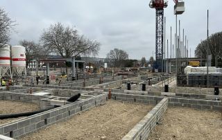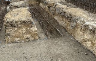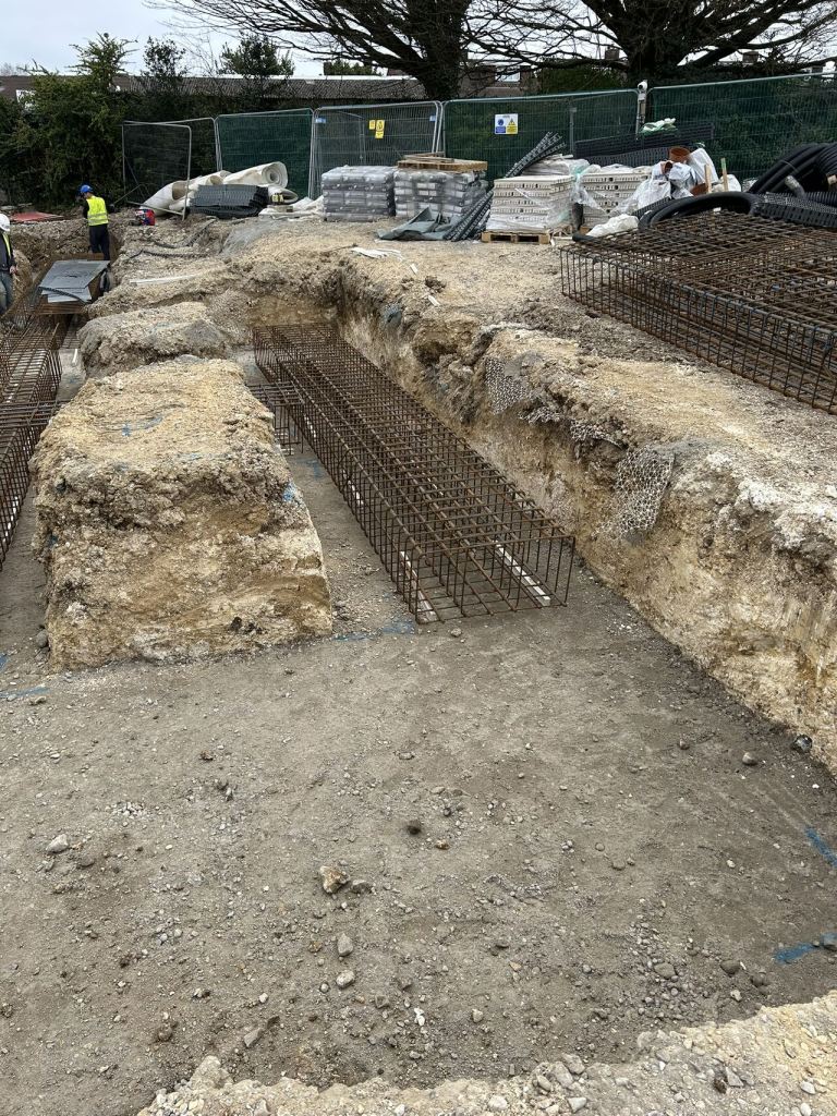 We were asked to look at the scheme at tender stage to identify value engineering opportunities in the foundations as the superstructure solution was already well developed by the architect, and the programme didn’t allow for a wholesale change. As such, the superstructure was to be a load-bearing masonry building. The proposed trench-filled foundations were particularly wide to accommodate the loads and needed to be deep due to the significant depth of made ground (where the natural ground has been significantly altered by the placement of artificial materials or fill). Foundation depths were estimated to vary from 1m to 3.1m.